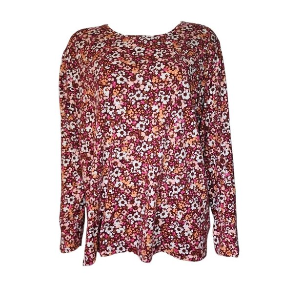 Croft & Barrow Top Womens Size 2X Pink Brown Floral Long Sleeve The Classic Tee