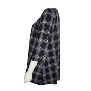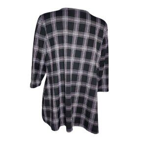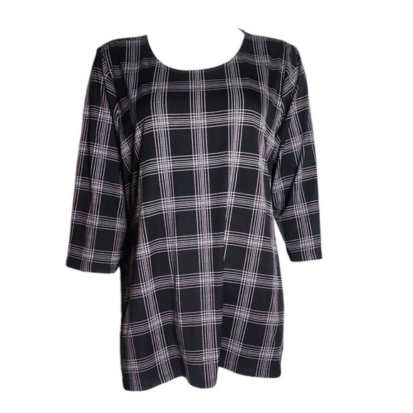 Croft & Barrow Top Womens Size XXL Black White Plaid Look 3/4 Sleeve Pullover