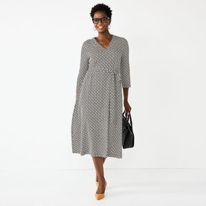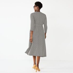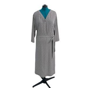 Croft & Barrow V-Neck Midi Dress Belted Geometrical Print Stretchy Plus Size 3X