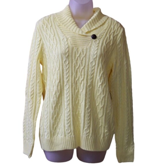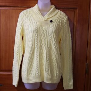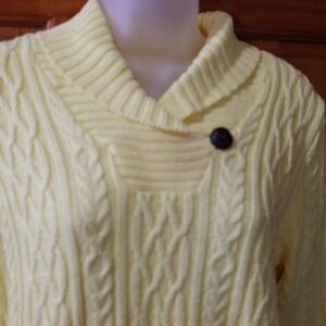 Croft & Barrow VTG Bright Cheerful Yellow Cable Knit Vneck Sweater Button Detail