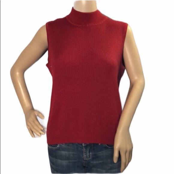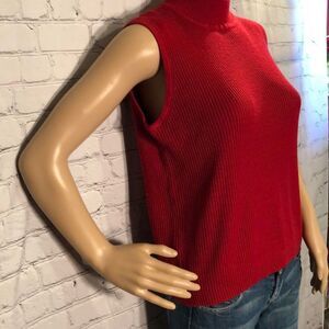 Bright red sleeveless mock turtleneck ribbed knit top