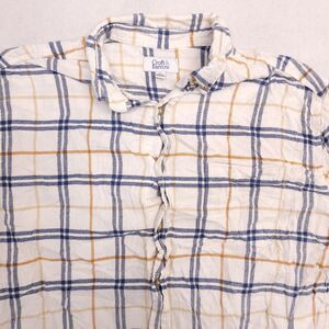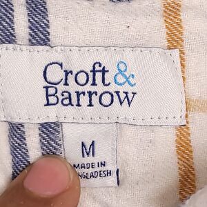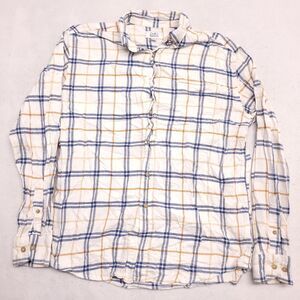Croft & Barrow Windowpane Flannel Casual Button Up Shirt Mens Size M White Blue