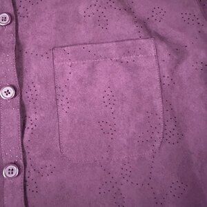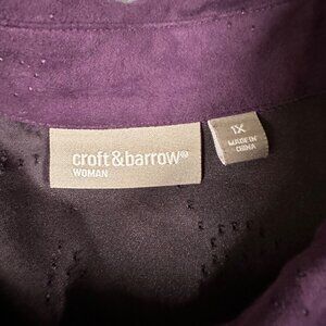 Croft Barrow Woman 1X Purple Long Sleeve Button Up Suede-Like Blouse Shirt