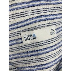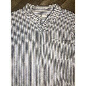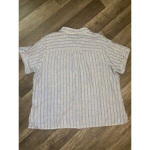 Croft & Barrow Woman Blue Linen Blend Stripes Short Sleeve Shirt Blouse XL