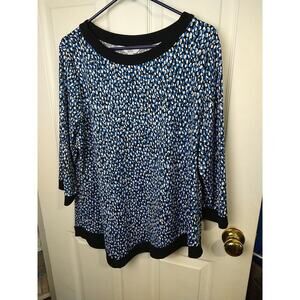 Croft & Barrow Woman XL Blouse Blue White Polkadot Asymmetrical Hemline Business