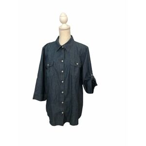 Croft & Barrow Woman XL Chambray Blue Button Down 2 Pockets Front 3/4 Sleeve