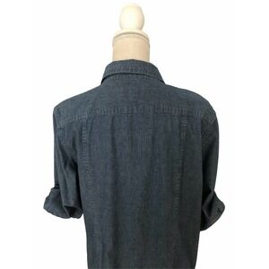Croft & Barrow Woman Chambre Blue Button Down with 2 Pockets Front 3/4 Sleeve