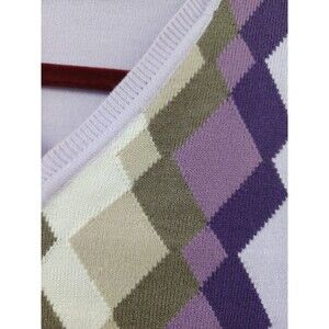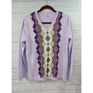 Croft & Barrow Womans Sz L Sweater Purple Lilac Argyle V-Neck Preppy Pullover