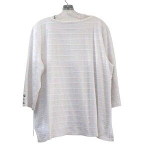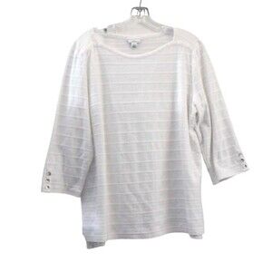 Croft & Barrow Women's 3/4 Sleeve Round Neck Matelasse' White Knit Top in XXL. Made from 100% cotton. Long sleeves with three silver buttons, round neck and a pullover closure. Machine Wash. No rips, tears, holes or stains.