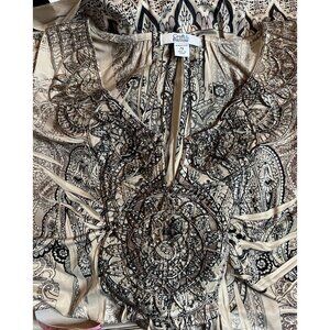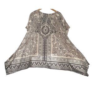 Croft & Barrow Women Plus 2X Paisley Print Tunic Embroidered Asymmetric Blousy