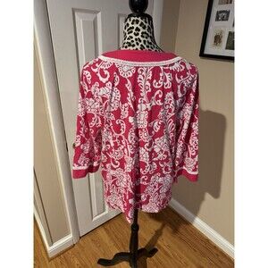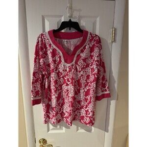 Croft & Barrow Women's 1X Pink White Floral Long Sleeve Tunic T-Shirt