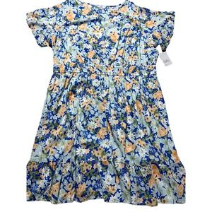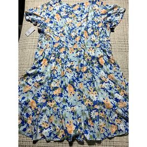 Croft & Barrow Womens 2XL Blue Floral Stretchy Ruffle Flutter Sleeve Dress NWT