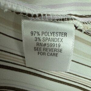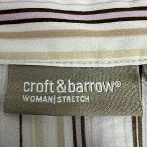 This Croft & Barrow women's short sleeve shirt combines comfort with style. Featuring a relaxed fit, button-down front, and a striped pattern, it’s crafted from a soft polyester-spandex blend for slight stretch. Lightweight and machine washable for easy care.