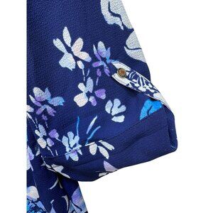 Croft & Barrow Womens Blouse XXL Navy Floral 3/4 Sleeves & Zipper Accent