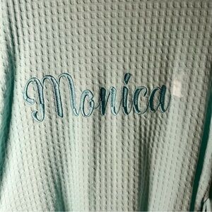 Croft & Barrow Womens Blue Waffle Texture Robe Size M Embroidered Wrap Tie Front