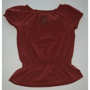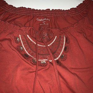 Croft & Barrow Womens Boho Top Size L Rust Embroidered Sequins Beads Elastic