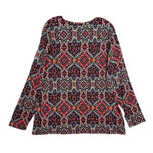 Croft & Barrow Womens Classic Long Sleeve Tee 2X Multicolor Geometric Print Boho