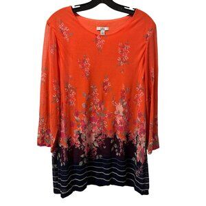 Croft & Barrow Womens Floral & Striped Top Sz L Multi Blouse