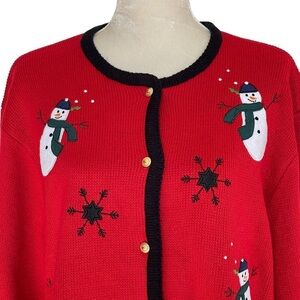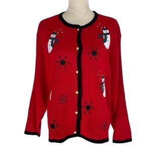 Croft & Barrow Women’s Holiday Ugly Christmas Sweater Cardigan Size XL Snowman