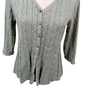Croft & Barrow Womens Large Cardigan Sweater Green 1/4 Button V Neck 3/4 Sleeve