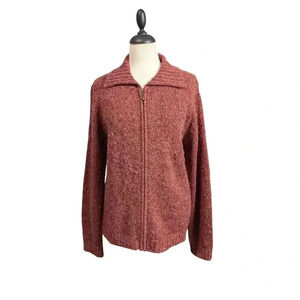 Croft & Barrow Women's Large Heather Mauve Full Zip Collared Knit Sweater
