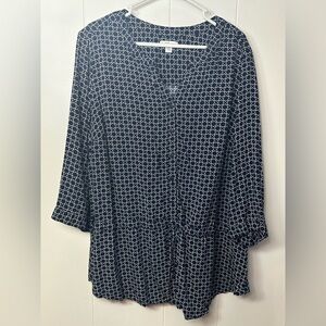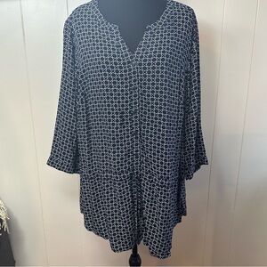 Croft & Barrow Women’s Long Sleeve Navy and White Patterned Tunic Size 2X