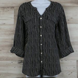 Croft & Barrow* Women's Long Tab Sleeve Button Down Curved Hem Blouse~ Size XL