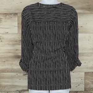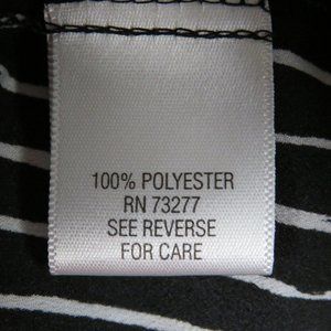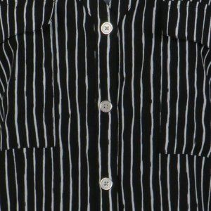Pre-Owned, Excellent Condition! 100% Polyester. Beautiful Black & White Stripe Blouse with Matching Silver Color Buttons, Double Chest Flap Pockets.
