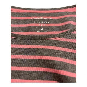 Croft & Barrow Women’s Medium Pink & Gray Striped Classic Tee