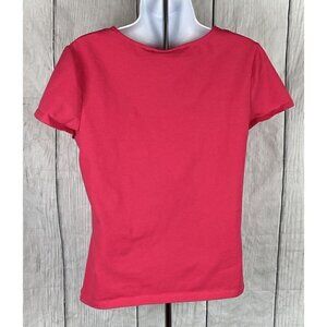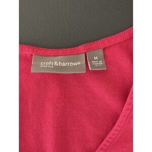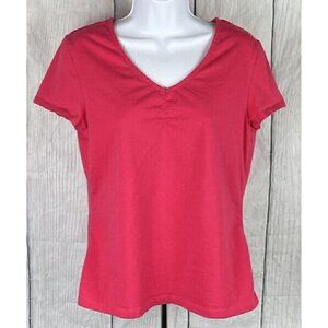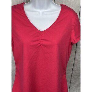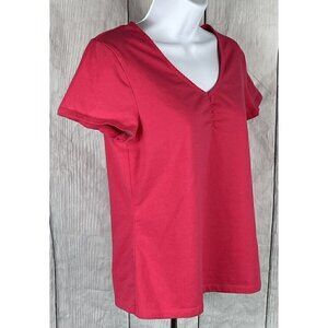 Croft & Barrow Womens Medium Short Sleeve Pink Shirt V-Neck Ruched Chest
