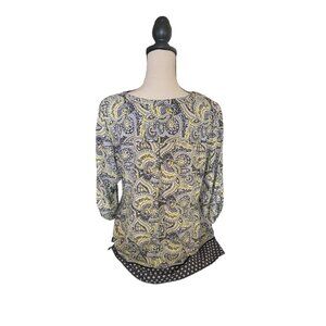 Croft Barrow Womens Medium Top Paisley 3/4 Sleeves Split Neck Retro