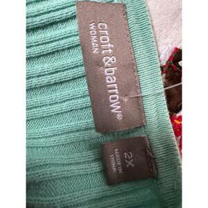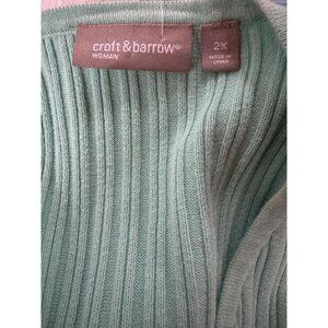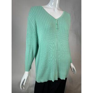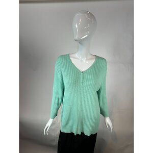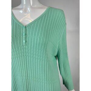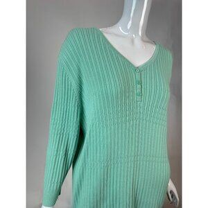 Croft & Barrow Womens Mint Green Ribbed V-Neck Sweater 2X 100% Cotton