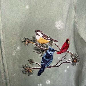 Experience warmth and style with these two green & beige, beautifully embroidered fleece jackets featuring charming bird motifs. Perfect for casual outings or cozy days at home.