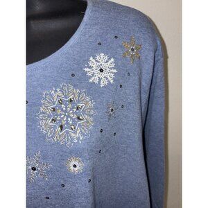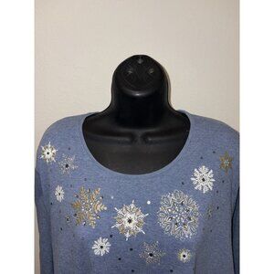 Croft & Barrow Womens Plus Size 3X Top Long Sleeve Winter Snowflake Accents Blue