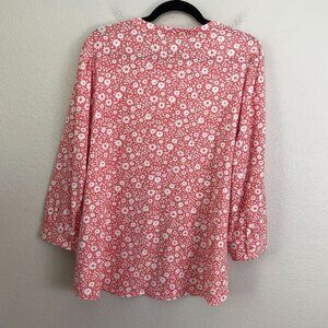Croft & Barrow Womens Plus XXL Floral 3/4 Sleeve Ruffle Henley Top Shirt