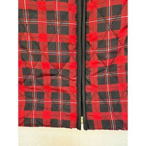 Croft & Barrow Womens Quilted Vest L Red Plaid Cinch Back