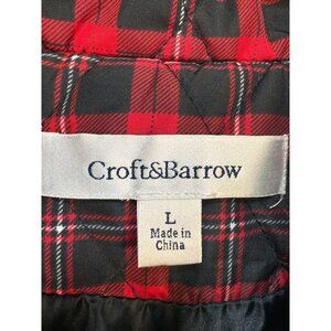This Croft & Barrow vest features a stylish red plaid pattern with a quilted design. Made entirely of polyester, it offers comfort and durability.