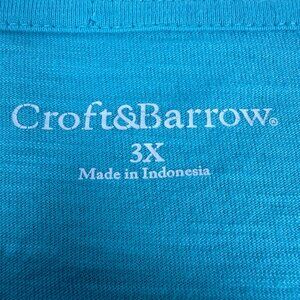 Croft & Barrow Womens Size 3X Turquoise Embroidered Button Accent Top