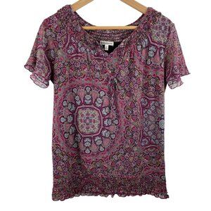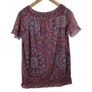 Croft & Barrow Womens Size Medium Multicolor Short Sleeve Lined Knit Shirt