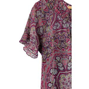 This Croft & Barrow Women's Medium Size Multicolor Short Sleeve Lined Knit Shirt offers a stylish ruffle sleeve and elastic waistband design. Crafted from nylon and polyester ensuring comfort and durability.