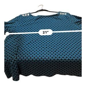 Croft & Barrow Women’s Top XXL Teal Black Print 3/4 Sleeve Button Shouldr Blouse