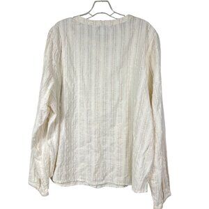 Croft & Barrow Womens XL White Gold Striped Textured Button-Front Blouse