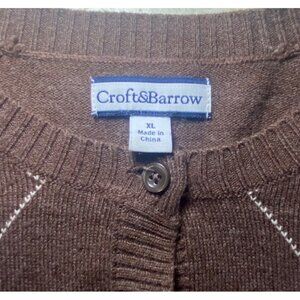 Croft & Barrow XL Brown Cardigan Sweater Purple Tan Argyle Preppy Academia