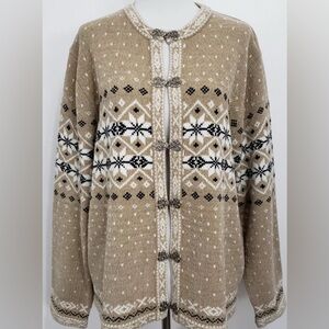 Croft & Barrow XL Chenille Cardigan Sweater Fancy Silver Clasps Fair Isle Nordic