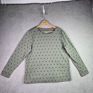Croft & Barrow XXL Green Polka Dot Extra Soft Pullover Split Hem Long Sleeve