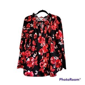 Croft & Barrow black red floral print long sleeve ruffle neck top in excellent condition 50" bust 27" long