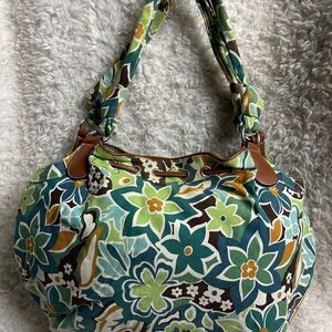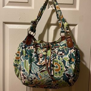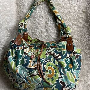 Croft & Barrow canvas floral large shoulder see bag with synthetic leather trim.