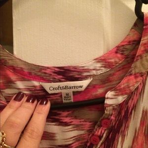 This is a beautiful pink and purple chevron shirt. This is from Croft and Barrow and is a size M.
