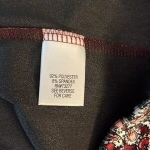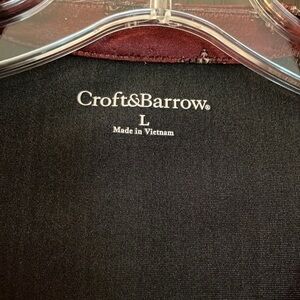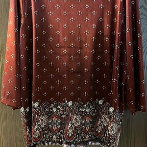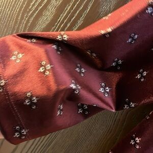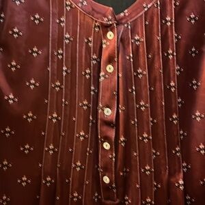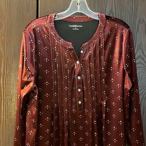 Croft & Barrow cranberry velvet top with small design at the top and white, copper and rust colored design at the bottom. Puckers a little if the top button is closed looks better with first button left open. Size Large. Pit to pit: 22. Length: 27.5 inches.