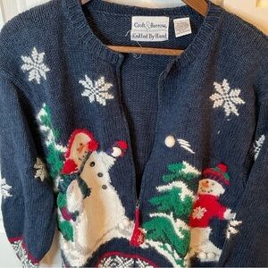 Croft & Barrow Hand Knitted holiday sweater. Zip up front. Snow man scene has so many intricate hand done details. Excellent condition